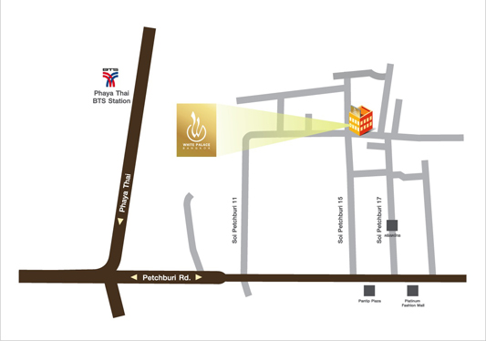 โรงแรมไวท์ พาเลซตั้งอยู่บนถนนเพชรบุรีในใจกลางประตูน้ำซึ่งเป็นย่านแฟชั่นของกรุงเทพ จึงเป็นสถานที่พักที่สะดวกสำหรับทั้งนักท่องเที่ยวและบรรดาขาช็อปปิ้ง อีกทั้งยังตั้งอยู่ในระยะที่สามารถเดินไปสถานีรถไฟฟ้าบีทีเอส ช่วยให้สะดวกต่อการเดินทางไปแหล่งท่องเที่ยวต่างๆ เช่น แม่น้ำเจ้าพระยา โรงแรมแห่งนี้ให้บริการห้องพักขนาดใหญ่และตกแต่งอย่างดี พร้อมด้วยเคเบิลทีวี มินิบาร์ และโทรศัพท์ทางไกลระหว่างประเทศ รวมถึงมีคลับ เลเวล ซึ่งเสิร์ฟอาหารหรูห้าคอร์สทุกวันที่เลานจ์ พร้อมบริกรส่วนตัว นอกเหนือจากนั้น ท่านยังสามารถพักผ่อนหย่อนใจได้ที่สระว่ายน้ำและสปา หรืออิ่มอร่อยกับจานเด็ดได้ตลอดทั้งวันที่ภัตตาคารคาเฟ่ คอนคอร์ส
