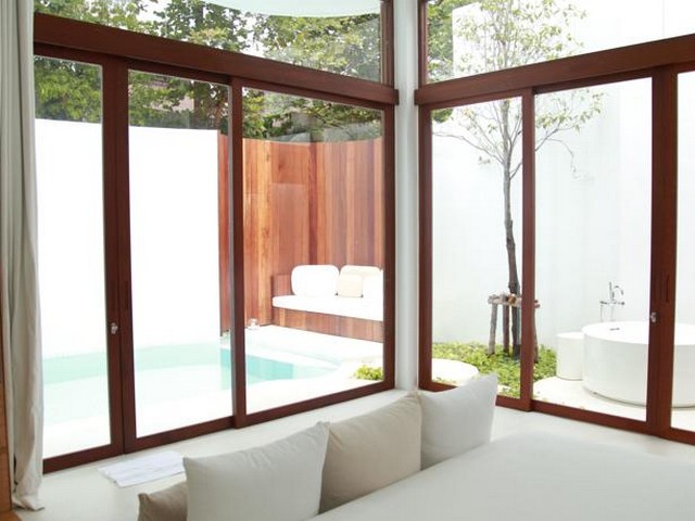 ห้องพักหรูหราตกแต่งทันสมัยพร้อมรายละเอียดแบบไทยๆ ติดตั้งพื้นไม้และกระจกที่สูงจากพื้นจรดเพดาน สิ่งอำนวยความสะดวกต่างๆ ในห้องรวมถึง เครื่องชงชา/กาแฟ ตู้เซฟ และทีวีระบบดาวเทียม