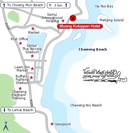 โรงแรมเมืองกุเลปันตั้งอยู่ห่าง 10 นาทีเมื่อขับรถจากสนามบินสมุย ในขณะที่สนามมวยไทยยอดนิยมอยู่ห่างออกไปเพียง 2 กม. โรงแรมยังล้อมรอบด้วยร้านอาหารท้องถิ่นจำนวนมาก