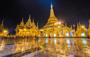 นำท่านชมและนมัสการพระมหาเจดีย์ชเวดากอง(Shwedagon Pagoda)พระเจดีย์ทองคำคู่บ้านคู่เมืองประเทศพม่าอายุกว่าสองพันห้าร้อยกว่าปีเจดีย์ทองแห่งเมืองดากอง หรือ ตะเกิง ชื่อเดิมของเมืองย่างกุ้ง มหาเจดีย์ที่ใหญ่ที่สุดในพม่าสถานที่แห่งนี้มี ลานอธิฐาน จุดที่บุเรงนองมาขอพรก่อนออกรบท่านสามารถนำดอกไม้ธูปเทียน ไปไหว้ เพื่อขอพรจากองค์เจดีย์ชเวดากอง ณ ลานอธิษฐานเพื่อเสริมสร้างบารมีและสิรมงคลนอกจากนี้รอบองค์เจดีย์ยังมีพระประจำวันเกิดประดิษฐานทั้งแปดทิศรวม 8องค์หากใครเกิดวันไหนก็ให้ไปสรงน้ำพระประจำวันเกิดตน จะเป็นสิริมงคลแก่ชีวิตพระเจดีย์นี้ได้รับการบูรณะและต่อเติมโดยกษัตริย์หลายรัชกาลองค์เจดีย์ห่อหุ้มด้วยแผ่นทองคำทั้งหมดน้ำหนักยี่สิบสามตันภายในประดิษฐานเส้นพระเกศาธาตุของพระพุทธเจ้าจำนวนแปดเส้นและเครื่องอัฐะบริขารของพระพุทธเจ้าองค์ก่อนทั้งสามพระองค์บนยอดประดับด้วยเพชรพลอยและอัญมณีต่างๆจำนวนมากและยังมีเพชรขนาดใหญ่ประดับอยู่บนยอดบริเวณเจดีย์จะได้ชมความงามของวิหารสี่ทิศซึ่งทำเป็นศาลาโถงครอบด้วยหลังคาทรงปราสาทซ้อนเป็นชั้นๆงานศิลปะและสถาปัตยกรรมทุกชิ้นที่รวมกันขึ้นเป็นส่วนหนึ่งของพุทธเจดีย์ล้วนมีตำนานและภูมิหลังความเป็นมาทั้งสิ้นชมระฆังใบใหญ่ที่อังกฤษพยายามจะเอาไปแต่เกิดพลัดตกแม่น้ำย่างกุ้งเสียก่อนอังกฤษกู้เท่าไหร่ก็ไม่ขึ้นภายหลังชาวพม่า ช่วยกันกู้ขึ้นมาแขวนไว้ที่เดิมได้จึงถือเป็นสัญลักษณ์แห่งความสามัคคีซึ่งชาวพม่าถือว่าเป็นระฆังศักดิ์สิทธิ์ให้ตีระฆัง 3ครั้งแล้วอธิษฐานขออะไรก็จะได้ดั่งต้องการชมแสงของอัญมณีที่ประดับบนยอดฉัตรโดยจุดชมแต่ละจุดท่านจะได้เห็นแสงสีต่างกันออกไปเช่นสีเหลือง, สีน้ำเงิน, สีส้ม, สีแดงเป็นต้น วันเกิดอาทิตย์ จันทร์ อังคาร พุธ พุธกลางคืน พฤหัสบดี ศุกร์ เสาร์ สัตว์สัญลักษณ์ ครุฑ เสือ สิงห์ ช้างมีงา ช้างไม่มีงา หนูหางยาว หนูหางสั้น พญานาค คำไหว้พระมหาเจดีย์ชเวดากอง วันทามิอุตตมะชมพูวระฐาเนสิงกุตตะเรมะโนลัมเมสัตตังสะรัตนะ ปฐมังกกุสันธังสุวรรณะตันตังธาตุโยธัสสะติทุติยังโกนาคะมะนังธัมมะการะนังธาตุโย ธัสสะติตติยังกัสสปังพุทธจีวะรังธาตุโยธัสสะติจตุกังโคตะมังอัตถะเกศาธาตุโยธัสสะติ อหังวันทามิตุระโตอหังวันทามิธาตุโยอหังวันทามิสัพพะทาอหังวันทามิสิระสา *** อธิษฐานพร้อมด้วยใบไม้ที่แปลว่าชัยชนะและความสาเร็จ ***