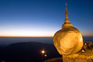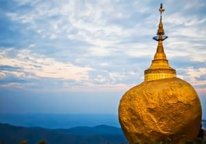นำท่านเดินทางต่อสู่ เมืองไจ้โท แห่งรัฐมอญระหว่างทางท่านจะได้พบกับสะพานเหล็กที่ข้ามผ่านชมแม่น้ำสะโตงสถานที่สำคัญทางประวัติศาสตร์ ซึ่งในอดีตขณะที่2 สมเด็จพระนเรศวรกำลังรวบรวมคนไทยกลับอโยธยา ได้ถูกทหารพม่าไล่ตามซึ่งนำทัพโดยสุรกรรมาเป็นกองหน้าพระมหาอุปราชาเป็นกองหลวง ยกติดตามกองทัพไทยมากองหน้าของพม่าตามมาทันที่ริมฝั่งแม่น้ำสะโตง ในขณะ ที่ฝ่ายไทยได้ข้ามแม่น้ำไปแล้วพระองค์ได้คอยป้องกันมิให้ข้าศึกข้ามตามมาได้ ได้มีการปะทะกันที่ริมฝั่งแม่น้ำสะโตงสมเด็จพระนเรศวรทรงใช้พระแสงปืนคาบชุดยาวเก้าคืบยิงถูกสุรกรรมาแม่ทัพหน้าพม่าเสียชีวิตบนคอช้าง กองทัพของพม่าเห็นขวัญเสีย จึงถอยทัพกลับกรุงหงสาวดี พระแสงปืนที่ใช้ยิงสุรกรรมาตายบนคอช้างนี้ได้นามปรากฏต่อมาว่า“พระแสงปืนต้นข้ามแม่น้ำสะโตง\"นับเป็นพระแสง อัษฎาวุธอันเป็นเครื่องราชูปโภคยังปรากฏอยู่จนถึงทุกวันนี้ จากนั้นนำท่านเดินทางสู่ พระธาตุอินทร์แขวนใช้เวลาเดินทางประมาณ 45 นาที ก็จะถึง คิ้มปูนแค้มป์ เพื่อทำการเปลี่ยนเป็นรถท้องถิ่นเป็นรถบรรทุกหกล้อ (เป็นรถประจำเส้นทางชนิดเดียวที่เราจะสามารถขึ้นพระธาตุอินทร์แขวนได้)ใช้เวลาเดินทางสักพักเพื่อเดินทางสู่ยอดเขาพักที่ Kyaikhto, Mountain Top , Yoyolae , Golden Rock Hotel เชิญทุกท่านพักผ่อนตามอัธยาศัยจากนั้นชม เจดีย์ไจ้ทีโยหรือพระธาตุอินทร์แขวนKyaikhtiyo Pagoda (Golden Rock)แปลว่า ก้อนหินทอง อยู่สูงจากระดับน้ำทะเล 1,200เมตร ลักษณะเป็นเจดีย์องค์เล็กๆ สูงเพียง5.5 เมตรตั้งอยู่บนก้อนหินกลมๆ ที่ตั้งอยู่บนยอดเขาอย่างหมิ่นเหม่ แต่ชาวพม่ามักยืนกรานว่าไม่มีทางตก เพราะพระเกศาธาตุศักดิ์สิทธิ์ที่บรรจุอยู่ภายในพระเจดีย์องค์ย่อมทำให้หินก้อนนี้ทรงตัวอยู่ได้อย่างสมดุลเรื่อยไป ตามคติการบูชาพระธาตุประจำปีเกิดของชาวล้านนาพระธาตุอินทร์แขวนนี้ให้ถือเป็น พระธาตุปีเกิดของปีจอ แทนพระเกตุแก้วจุฬามณีบนสรวงสวรรค์โดยเชื่อว่าถ้าผู้ใดได้มานมัสการพระธาตุอินทร์แขวนนี้ครบ3 ครั้งผู้นั้นจะมีแต่ความสุขความเจริญพร้อมทั้งขอสิ่งใดก็จะได้สมดั่งปรารถนาทุกประการท่านสามารถเตรียมแผ่นทองคำไปเพื่อปิดทององค์พระธาตุอินทร์แขวน (เข้าไปปิดทองได้เฉพาะสุภาพบุรุษ ส่วนสุภาพสตรี สามรถอธิฐาน และฝากสุภาพบุรุษเข้าไปปิดแทนได้)