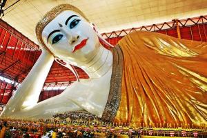 นมัสการ พระพุทธไสยาสน์ชเวตาเลียว (Shew Thalyang Buddha) กราบนมัสการพระพุทธรูปนอนที่ที่ มีพุทธลักษณะที่สวยงามในแบบของมอญ ในปี พ.ศ.2524 ซึ่งเป็นที่เคารพนับถือของชาวพม่าทั่วประเทศ และเป็นพระนอนที่งดงามที่สุดของพม่า องค์พระยาว 55 เมตร สูง 16 เมตรถึงแม้จะไม่ใหญ่เท่าพระพุทธ ไสยาสน์เจ้าทัตจีที่ย่างกุ้ง แต่ก็งามกว่าโดยพระบาทจะวาง เหลื่อมพระบาท เป็นลักษณะที่ไม่เหมือนกับพระนอนของไทย |