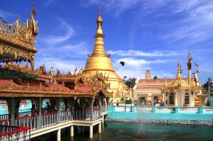 นำท่านชมและนมัสการพระมหาเจดีย์ชเวดากอง(Shwedagon Pagoda)พระเจดีย์ทองคำคู่บ้านคู่เมือง ประเทศพม่าอายุกว่าสองพันห้าร้อยกว่าปีเจดีย์ทองแห่งเมืองดากอง หรือ ตะเกิง ชื่อเดิมของเมืองย่างกุ้ง มหาเจดีย์ที่ใหญ่ที่สุดในพม่าสถานที่แห่งนี้มี ลานอธิฐาน จุดที่บุเรงนองมาขอพรก่อนออกรบท่านสามารถ นำดอกไม้ธูปเทียน ไปไหว้ เพื่อขอพรจากองค์เจดีย์ชเวดากอง ณ ลานอธิษฐานเพื่อเสริมสร้างบารมีและ สิรมงคลนอกจากนี้รอบองค์เจดีย์ยังมีพระประจำวันเกิดประดิษฐานทั้งแปดทิศรวม 8 องค์หากใครเกิด วันไหนก็ให้ไปสรงน้ำพระประจำวันเกิดตน จะเป็นสิริมงคลแก่ชีวิตพระเจดีย์นี้ได้รับการบูรณะและต่อเติม โดยกษัตริย์หลายรัชกาลองค์เจดีย์ห่อหุ้มด้วยแผ่นทองคำทั้งหมดน้ำหนักยี่สิบสามตันภายในประดิษฐาน เส้นพระเกศาธาตุของพระพุทธเจ้าจำนวนแปดเส้นและเครื่องอัฐะบริขารของพระพุทธเจ้าองค์ก่อนทั้งสาม พระองค์บนยอดประดับด้วยเพชรพลอยและอัญมณีต่างๆจำนวนมากและยังมีเพชรขนาดใหญ่ประดับอยู่ บนยอดบริเวณเจดีย์จะได้ชมความงามของวิหารสี่ทิศซึ่งทำเป็นศาลาโถงครอบด้วยหลังคาทรงปราสาท ซ้อนเป็นชั้นๆงานศิลปะและสถาปัตยกรรมทุกชิ้นที่รวมกันขึ้นเป็นส่วนหนึ่งของพุทธเจดีย์ล้วนมีตำนาน และภูมิหลังความเป็นมาทั้งสิ้นชมระฆังใบใหญ่ที่อังกฤษพยายามจะเอาไปแต่เกิดพลัดตกแม่น้ำย่างกุ้ง เสียก่อนอังกฤษกู้เท่าไหร่ก็ไม่ขึ้นภายหลังชาวพม่า ช่วยกันกู้ขึ้นมาแขวนไว้ที่เดิมได้จึงถือเป็นสัญลักษณ์ แห่งความสามัคคีซึ่งชาวพม่าถือว่าเป็นระฆังศักดิ์สิทธิ์ให้ตีระฆัง 3ครั้งแล้วอธิษฐานขออะไรก็จะได้ดั่งต้อง การชมแสงของอัญมณีที่ประดับบนยอดฉัตรโดยจุดชมแต่ละจุดท่านจะได้เห็นแสงสีต่างกันออกไป เช่นสีเหลือง, สีน้ำเงิน, สีส้ม, สีแดงเป็นต้น