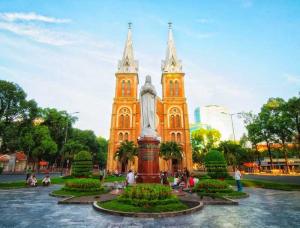 บริการอาหารกลางวัน ณ ภัตตาคาร นำท่านชมจัตุรัสโฮจิมินห์และอนุสาวรีย์ประธานาธิบดีโฮจิมินห์โบสถ์นอร์ธเธอดัมอายุกว่า100 ปี ก่อสร้างแบบNEO-ROMAN นับเป็นสถาปัตยกรรมที่สมบูรณ์แบบที่สุดแห่งหนึ่งของโฮจิมินห์ซิตี้ ชมความงดงามของสถาปัตยกรรมตะวันตกปัจจุบันใช้เป็นหอสวดมนต์สำหรับผู้ที่เป็นคริสต์ศาส นิกชนเชิญท่านถ่ายภาพไว้เป็นที่ระลึก นำท่านชมที่ทำการไปรษณีย์กลางที่มีลักษณะสถาปัตยกรรม แบบโคโลเนียลหลังจากนั้นนำท่านช้อปปิ้งที่ ตลาดเบนถันตลาดสินค้าพื้นเมืองเช่น รองเท้า คริสตัล กระเป๋า ของที่ระลึกสิ่งของเครื่องใช้ต่าง ๆ มากมาย สมควรเวลาเดินสู่ สนามบิน Tan Son Nhat