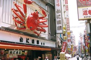 นำท่านช้อปปิ้งย่าน ชินไซบาชิ ย่านช้อปปิ้งชื่อดังของนครโอซาก้า ภายในย่านนี้มีร้านค้าเก่าแก่ปะปนไปกับร้านค้าอันทันสมัย และสินค้าหลากหลายรูปแบบทั้งสำหรับเด็ก และผู้ใหญ่ ซึ่งย่านนี้ถือว่าเป็นย่านแสงสี และบันเทิงชั้นนำแห่งหนึ่งของนครโอซาก้า อีกทั้งยังมีร้านอาหารทะเลขึ้นชื่อมากมาย ซึ่งเสน่ห์อย่างหนึ่งคือ ทุกร้านจะประดับประดาร้านของตนด้วยแสงไฟนีออนซึ่งดัดทำให้เป็นรูปปู กุ้ง และปลาหมึก ซึ่งนักท่องเที่ยวให้ความสนใจและแวะถ่ายรูปกันเป็นที่ระลึกอย่างมาก และร้านค้าทุกแห่ง จะพยายามสร้างจุดเด่นให้แก่ร้านของตนให้ได้มากที่สุด เพื่อดึงดูดลูกค้าให้เข้ามาใช้บริการ สัญลักษณ์เด่นของย่านนี้คือ ตึกรูปเครื่องหมายการค้าของกูลิโกะ ผลิตภัณฑ์ขนมชื่อดังจากญี่ปุ่นนั่นเอง