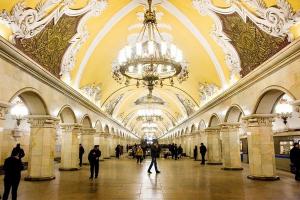 นำท่านชม สถานีรถไฟใต้ดินกรุงมอสโคว์ ถือได้ว่ามีความสวยงามมากที่สุดในโลก ด้วยความโดดเด่นทางสถาปัตยกรรมการตกแต่งภายในสถานี ความสวยงามของสถานีรถไฟฟ้าใต้ดินมีจุดเริ่มต้นมาจากช่วง แรกสุดที่สตาลิน ขึ้นมาเป็นผู้นำสหภาพโซเวียต ลักษณะของสถาปัตยกรรมที่นำมาตกแต่งภายในสถานีนั้นเป็นลักษณะของ Monumental art คือลักษณะของงานศิลปะที่สร้างขึ้นเพื่อระลึกถึงคุณความดีของวีรบุรุษ ซึ่งจะสื่อออกมาในรูปของงานปั้น รูปหล่อ ภาพสลักนูนต่ำ ภาพวาดประดับลวดลายแบบโมเสก