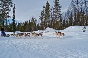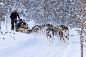 นำท่านเดินทางสู่ Husky Park ฟาร์มสุนัขพันธ์ฮัสกี้ ให้ท่านได้ชมความน่ารักของสุนัขแสนรู้ เป็นพันธุ์ที่ฉลาดเฉลียวและแข็งแรงมาก โดยอาศัยอยู่ในเขตหนาว ซึ่งชาวแลปป์ได้เลี้ยงสุนัขพันธุ์นี้เพื่อใช้ในการลากเลื่อนบนน้ำแข็งหรือหิม่ะ ให้ท่านได้สัมผัสประสบการณ์ นั่งรถเทียมสุนัขฮัสกี้ลากเลื่อน(Husky Sledding) โดยที่ฟาร์มนี้จะบริการต้อนรับท่านด้วยชาร้อน ขนมพื้นเมือง กับบรรยากาศต้อนรับที่แสนจะอบอุ่น