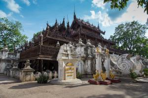 นำท่านไป พระราชวังไม้สักชเวนานจอง (Golden Palace Monastry) วังที่สร้างด้วยไม้สักทั้งหลัง งดงามตามแบบศิลปะพม่าแท้ๆ วิจิตรตระการด้วยลวดลายแกะสลักประณีตอ่อนช้อย ทั้งหลังคา บานประตูและหน้าต่าง โดยเน้นรายละเอียดเกี่ยวกับพุทธประวัติและทศชาติของพระพุทธเจ้า สร้างโดยพระเจ้ามินดงในปี พ.ศ. 2400 ซึ่งเป็นปีที่พระองค์ย้ายราชธานีจากอมรปุระมาอยู่ที่เมือง มัณฑะเลย์เพื่อเป็นตำหนักยามแปรพระราชฐาน แต่หลังจากที่พระองค์สิ้นพระชนม์ พระเจ้าธีบอ หรือ สีป่อ พระโอรสก็ทรงยกวังนี้ถวายเป็นวัดถือได้ว่าเป็นงานฝีมือที่ประณีตของช่างหลวงชาว มัณฑะเลย์อย่างแท้จริง นำท่านชม วัดกุโสดอ (Kuthodaw Pagoda) ซึ่งครั้งหนึ่งเคยเป็นสถานที่ทำการสังคายนาพระไตรปิฎก ครั้งที่ 5 มีแผ่นศิลาจารึกพระไตรปิฎกทั้งหมด 84,000 พระธรรมขันธ์ และหนังสือกินเนสบุ๊คได้บันทึก ไว้ว่า “หนังสือที่ใหญ่ที่สุดในโลก”เดินทางสู่เขา Mandalay Hill ตั้งอยู่ทางตะวันออกเฉียงเหนือของ พระราชวัง เขาลูกนี้สูง 240 เมตร ซึ่งเป็นจุดชมวิวทิวทัศน์ที่สวยงามที่สุดของเมืองมัณฑะเลย์ ซึ่งอยู่ บนยอดเขา สามารถมองเห็นทัศนียภาพของเมืองมัณฑะเลย์เกือบทั้งเมือง ชมพระอาทิตย์ลับฟ้าอัน สวยงามบนยอดเขามัณฑะเลย์