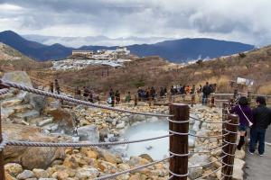นำท่านเดินทางสู่ อุทยานแห่งชาติฮาโกเน่ ตั้งอยู่ในจังหวัดคะนะงะวะ ซึ่งเป็นแหล่งรวมบ่อน้ำพุร้อนมากถึง 17 แห่ง จากนั้นนำท่าน ล่องเรือทะเลสาบอาชิ (ใช้เวลาในการล่องในการล่อง 10 นาที) กับเรือแฟนตาซี โจรสลัดชมความงามของทะเลสาบอันดับหนึ่งในญี่ปุ่น ซึ่งได้ก่อตัวจากลาวาของภูเขาไฟ ท่านจะได้สัมผัส กับทัศนียภาพที่สวยงามดั่งภาพวาดสะท้อนลงสู่ทะเลสาบ จากนั้นนำท่านเดินทางโดยรถโค้ชสู่ หุบเขา โอวาคุดานิ ที่ยังครุกรุ่นด้วยควันจากบ่อกำมะถันเดือดอยู่ตลอดเวลา ชมบ่อน้ำแร่กำมะถันซึ่งสามารถต้มไข่ ให้สุกได้ โดยชาวญี่ปุ่นมีความเชื่อว่าหากได้ทานไข่ดำหนึ่งฟองจะสามารถทำให้อายุยืนยาวขึ้นอีก ประมาณ 7 ปี