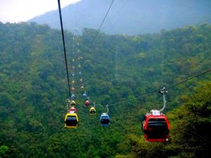 นั่งกระเช้าสู่ เขาเทียนเหมินซาน กระเช้าแห่งนี้จัดว่าเป็นกระเช้าที่มีความยาวที่สุดในโลก ระยะทางประมาณ 7.5 กิโลเมตร โดยใช้เวลานั่งประมาณ 40 นาที 1 กระเช้านั่งได้ประมาณ 8 ท่าน และกระเช้าแห่งนี้จัดได้ว่าเป็นกระเช้าที่มีความทันสมัยมากที่สุดแห่งหนึ่ง ระหว่างทางท่านจะได้ชมความงามของภูเขานับร้อยลูก สลับซับซ้อนกันดูสวยงามแปลกตา