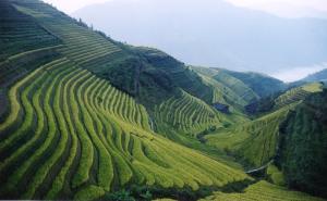เมืองหลงเซิ่น (ใช้เวลาเดินทางประมาณ 2 ชั่วโมง) เมืองที่อุดมสมบูรณ์ด้วยทรัพยากรธรรมชาติ ป่าไม้ แร่ธาตุ เป็นเมืองน้ำพุร้อนที่มีชื่อเสียงแห่งหนึ่ง จากนั้นนำท่านขึ้นสู่ นาขั้นบันไดหลงจี๋ นาขั้นบันไดที่แลดูเหมือนกับมังกรเลื้อยรอบเนินเขา เนื่องจากบริเวณนั้นไม่มีพื้นที่ราบ ชาวบ้านจึงทำนาบนภูเขาในลักษณะขั้นบันได โดยไล่ตั้งแต่ตีนเขาจนถึงยอดเขา เนินเขาเตี้ยก็ดูเหมือนกับขดก้นหอย ส่วนภูเขาสูงก็ดูเหมือนเจดีย์ ช่างอัศจรรย์ยิ่ง