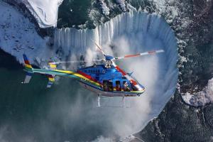 บริการอาหารกลางวัน ณ ภัตตาคาร นำท่านเดินเข้าสู่จุดชมวิว ที่สามารถมองเห็นน้ำตกไนแองการ่าได้อย่างชัดเจน มีเวลาให้ท่านเก็บภาพ ความประทับใจ ได้อย่างเต็มที่ ท่านสามารถซื้อทัวร์นั่งเฮลิคอปเตอร์ (NIAGARA HELICOPTER) เพื่อชมความงามของน้ำตกไนแองการ่าในมุมมองที่น่าตื่นเต้น เพื่อไม่ให้ท่านพลาดโอกา สในการเก็บภาพ สวยๆในแต่ละมุม ควรเตรียมกล้องถ่ายรูปไว้ให้พร้อมตั้งแต่ขึ้นเฮลิคอปเตอร์ โดยทัวร์นี้จะเริ่มต้นด้วย การชมโรงผลิตไฟฟ้า จากพลังงานน้ำ (The Sir Adam Beck Generating Plant), The Niagara Parks Commission School of Horticulture, หมายเหตุ การนั่งเฮลิคอปเตอร์ ขึ้นอยู่สภาพอากาศ และหาก สภาพอากาศไม่เอื้ออำนวย ไม่รวมกับค่าทัวร์มีค่าใช้จ่ายเพิ่มเติมท่านล่ะ 150 USD
