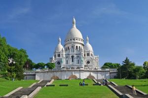 นำคณะเดินทางเข้าสู่ “ย่านมองมาร์ต” (Montmarte) เป็นเนินเขาสูง 130 เมตร ทางเหนือของปารีสและ เป็นจุดที่สูงที่สุดของเมือง ชม “มหาวิหารซาเคร-เกอร์” (Bassilica of Sacre Coeur ) หรือวิหารพระหฤทัย ที่สร้างขึ้นเพื่อเป็นอนุสรณ์สถานที่อุทิศแด่ชาวฝรั่งเศส ที่เสียชีวิตจากสงครามกับป รัสเซีย ออกแบบ ตามแบบศิลปะสไตล์โรมัน - ไบเซนไทน์ Roman-Byzantine สีขาวสวยเด่นเป็นสง่าบนเนิน เขามองมาร์ต