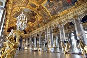 นำคณะเข้าชมความสวยงามภายใน “ พระราชวังแวร์ซายย์” (คิวกรุ๊ปไม่ต้องต่อแถวนาน) ไกด์ประจำ พระราชวังคอยบรรยายตามจุดต่างที่สำคัญๆของพระราชวัง จัดเป็น 1 ใน 7 สิ่งมหัศจรรย์ของโลกยุคปัจจุบัน เพราะความสวยงามใหญ่โตของตัวปราสาท และสวนดอกไม้ที่มีการตกแต่งไว้อย่างสวยงาม ผู้ที่ก่อสร้าง พระราชวังแวร์ซายส์ ที่งดงามแห่งนี้ คือ พระเจ้าหลุยส์ที่ 14 ของฝรั่งเศส พระราชวังในอดีตแห่งนี้มีพื้นที่ ประมาณถึง 37,000 ไร่ แต่ปัจจุบันนั้นพื้นที่ บางส่วนถูกนำไปใช้ประโยชน์ด้านอื่นจึงเหลือพื้นที่เพียง 5,500 ไร่ แต่อย่างไรก็ตามพระราชวังแวร์ซายส์ ก็ยังคงความงดงามและยิ่งใหญ่อลังการเสมอมา นำท่านชมห้องหับ ต่างๆ ที่ตกแต่งอย่างวิจิตรบรรจงตามชื่อเทพเจ้าต่างๆ อาทิเช่น ห้องเฮอคิวลีส, ห้องวีนัส, ห้องนโปเลียน, ห้องอพอลโล, ฮอลล์ออฟมิเรอร์ Hall of Mirrors แต่ละห้องของพระราชวังล้วนมีค่าด้วยภาพเขียนสีแบบ เฟรสโก้ โดยช่างฝีมือเอกชาวฝรั่งเศส ควรค่าแก่การยกย่อง ให้เป็นพระราชวังที่งดงามล้ำค่าที่สุดแห่งหนึ่ง ของโลก ชมห้องประวัติศาสตร์เมื่อคราวที่พระยาโกษาธิบดี(ปาน) เข้าเฝ้าราชสำนักฝรั่งเศส