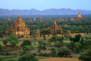 เดินทางถึงเมืองพุกาม (Bagan) นำท่านนำท่านชม พระเจดีย์ชเวสิกอง (Shwezigon Pagoda) ซึ่งเป็น สถูปดั้งเดิมของพม่าโดยแท้ มีลักษณะเป็นสีทองขนาดใหญ่ สร้างขึ้นหลังพระเจ้าอโนรธาขึ้นครองราชย์ เพื่อใช้บรรจุพระบรมสารีริกธาตุ จากพระสรีระหลายส่วน มีลักษณะเป็นสีทองขนาดใหญ่ ใช้เป็นทั้งที่ ประชุมสวดมนต์ และศูนย์กลางของพระพุทธศาสนานิกายเถรวาทในพุกาม ชม วัดอนันดา (Ananda Temple) ตั้งอยู่ทางทิศตะวันออกของกำแพงเมือง เป็นวัดสีขาว มองเห็นได้ชัดเจน สร้างเสร็จเมื่อปี 1091 ซึ่งวิหารแห่งนี้ นับได้ว่าเป็นวิหารที่มีขนาดใหญ่ที่สุดในพุกาม มีรูปร่างเป็นสี่เหลี่ยมจัตุรัส มีมุขเด็จยื่นออกไปทั้ง 4 ด้านซึ่งต่อ มาเจดีย์แห่งนี้เป็นต้นแบบของสถาปัตยกรรมพม่าในยุคต้นของพุกาม และสิ่งที่น่าทึ่งของวิหารแห่งนี้ก็คือ ที่ ช่องหลังคาเจาะเป็นช่องเล็กๆ ให้แสงสว่างส่องลงมาต้ององค์พระ ให้มีแสงสว่างอย่างน่าอัศจรรย์ จากนั้นพาท่านชม วัดมนุหา (Manuha Temple) ตั้งอยู่ทางตอนใต้ของหมู่บ้านมยินกะบา สร้างเมื่อปี 1059 โดยพระเจ้ามนูหะกษัตริย์แห่งมอญ เพื่อสั่งสมบุญไว้สำหรับชาติหน้า จึงได้นำอัญมณีบางส่วนไปขายมาสร้าง วัดนี้ โครงสร้างวิหารค่อนข้างแคบ มีพระนอนหนึ่งองค์ กับ พระพุทธรูปอีกสามองค์นั่งเบียดเสียดอยู่ภายใน สะท้อนถึงความคับแค้นพระทัยของกษัตริย์เชลยพระองค์นี้เป็นอย่างดี