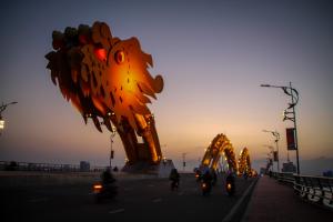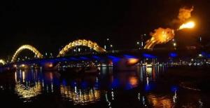 นำท่าน ชมสะพานมังกร Dragon Bridgeอีกหนึ่งที่เที่ยวดานังแห่งใหม่ สะพานมังกร ไฟสัญลักษณ์ความสำเร็จแห่งใหม่ของเวียดนาม ที่มีความยาว 666 เมตร ความกว้าง เท่าถนน 6 เลนส์ เชื่อมต่อสองฟากฝั่งของแม่น้ำฮัน ประเทศเวียดนามสะพานมังกร ถูกสร้างขึ้นเพื่อเป็นแหล่งท่องเที่ยวดานัง เป็นสัญลักษณ์ของการฟื้นคืนประเทศ และ เป็นการฟื้นฟูเศรษฐกิจของประเทศ โดยได้เปิดใช้งานตั้งแต่ปี 2013ด้วยสถาปัตยกรรม ที่บวกกับเทคโนโลยีสมัยใหม่ที่ได้รับแรงบันดาลใจจากตำนานของเวียดนามเมื่อกว่า หนึ่งพันปีมาแล้ว