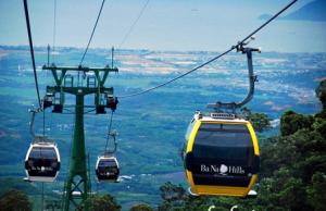 นั่งกระเช้าขึ้นสู่บานาฮิลล์กระเช้าแห่งบานาฮิลล์นี้ได้รับการบันทึกสถิติโลกโดย World Record ว่าเป็นกระเช้าไฟฟ้าที่ยาวที่สุดประเภทNon Stopโดยไม่หยุดแวะ มีความยาวทั้งสิ้น 5,042 เมตรและเป็นกระเช้าที่สูงที่สุดที่ 1,294 เมตรนักท่อง เที่ยวจะได้สัมผัสปุยเมฆหมอกและบางจุดมีเมฆลอยต่ำกว่ากระเช้าพร้อมอากาศ บริสุทธิ์อันสดชื่นจนทำให้ท่านอาจลืมไปเสียด้วยซ้ำว่าที่นี่ไม่ใช่ยุโรปเพราะอากาศ ที่หนาวเย็นเฉลี่ยตลอดทั้งปีประมาณ 10 องศาเท่านั้นจุดที่สูงที่สุดของบานาฮิลล์มี ความสูง 1,467 เมตรกับสภาพผืนป่าที่อุดมสมบูรณ์