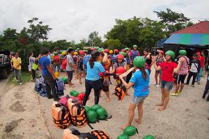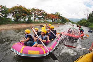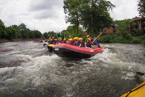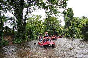 นำท่านสมาชิก สัมผัสความตื่นเต้น ท้าทายสนุกสนานกับการ ล่องแก่งลำน้ำนครนายก ผจญภัยผ่านสายธารอันคดเคี้ยว ท้าทายแก่งสามชั้นอันลือชื่อ ชุ่มฉ่ำ และเพลิดเพลินกับทัศนียภาพสองฝั่งลำน้ำ ตลอดระยะทางประมาณ 7 - 8 กิโลเมตร ถึงจุดหมาย .. นำท่านเปลี่ยนพาหนะเป็น รถกะบะ กลับสู่ รีสอร์ท