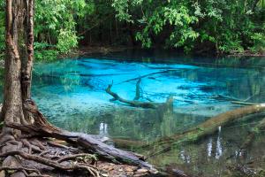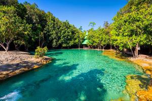 นำสมาชิกทุกท่าน เดินทางถึง สระมรกต Unseen In Thailand เตรียมตัวให้พร้อมกับ เส้นทางเดินป่า สัมผัสความงดงามตามธรรมชาติ 2 ข้างทาง ร่มรื่นผ่อนคลายสบายๆ ตลอดการเดินเท้าเข้าสู่ ใจกลางป่า พบกับ สระน้ำสีเขียวมรกต .. เล่นน้ำ ว่ายน้ำ นั่งพักผ่อนคลาย ตามอัธยาศัย