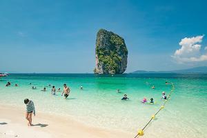 บริการอาหารกลางวันแบบบุฟเฟ่ต์ แด่ท่านสมาชิก ณ เกาะปอดะ ( มื้อที่ 4 ) .. อิ่มอร่อย สบายๆ ท่ามกลางหาดทรายสีขาวละเอียด น้ำทะเลสีฟ้าใส เชิญท่านสนุกสนานกับการเล่นน้ำ หยอกล้อฝูงปลามากมาย สมควรแก่เวลา นำสมาชิกทุกท่าน เดินทางสู่ หาดถ้ำพระนาง - เล่นน้ำอ่าวต้นไทร
